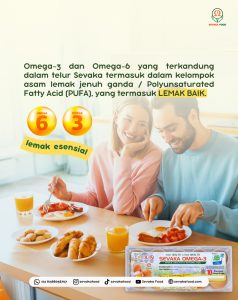 Omega-3 dan Omega-6 yang ada di telur Sevaka termasuk dalam kelompok lemak tak jenuh ganda atau Polyunsaturated Fatty Acid (PUFA), yang termasuk lemak baik.